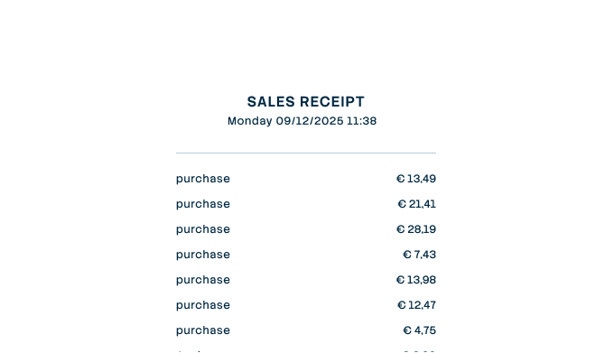 Employees photograph the receipt immediately after purchase via the mobile app. The system automatically links the receipt to the correct transaction. The receipt is saved with all transaction details. This means no more lost receipts and complete records for VAT reclaim.