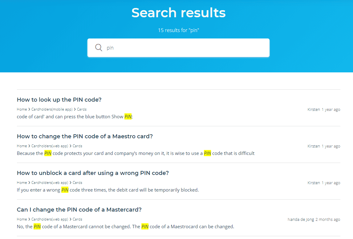 The Helpcenter has three main sections: a browsable knowledge base, a requests section and a section for adjusting your card settings. These help you to find a solution to your problem even faster than before.