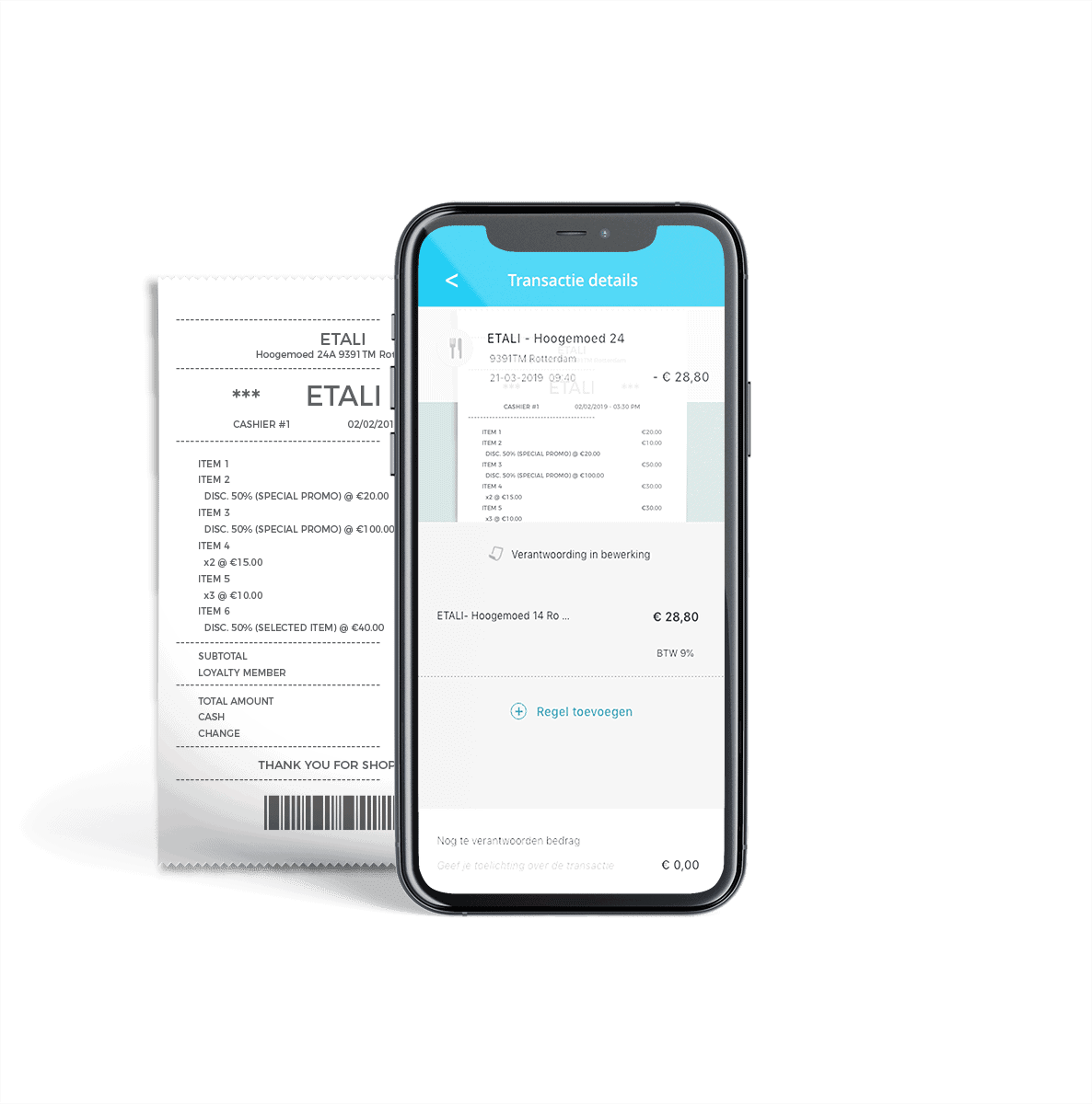 Maak in de mobiele app een foto van de kassabon en hij wordt direct aan de transactie gekoppeld.